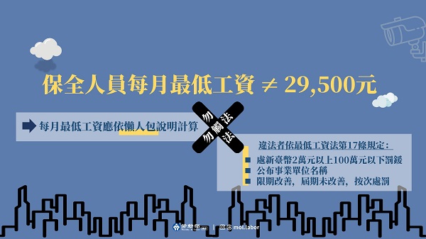 115年最低工資已調漲!勞動部製作「保全人員薪資計算懶人包」,避免保全業者誤觸違反最低工資規定